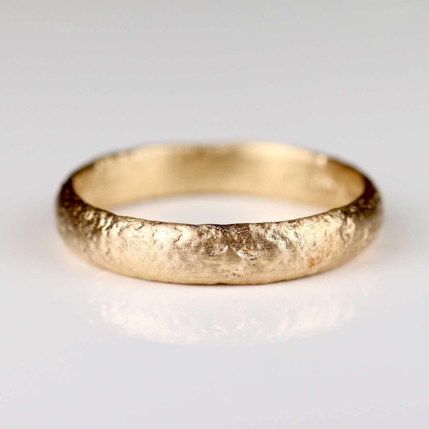 This distinctive band has an uneven, rugged texture that gives it the look of a timeworn, ancient ring. The organic, nonuniform edges gently rise up and down, mimicking life's ever-changing journey. In contrast to our 3mm Ancient Band, this ring has a more rounded profile, with a deeper texture.