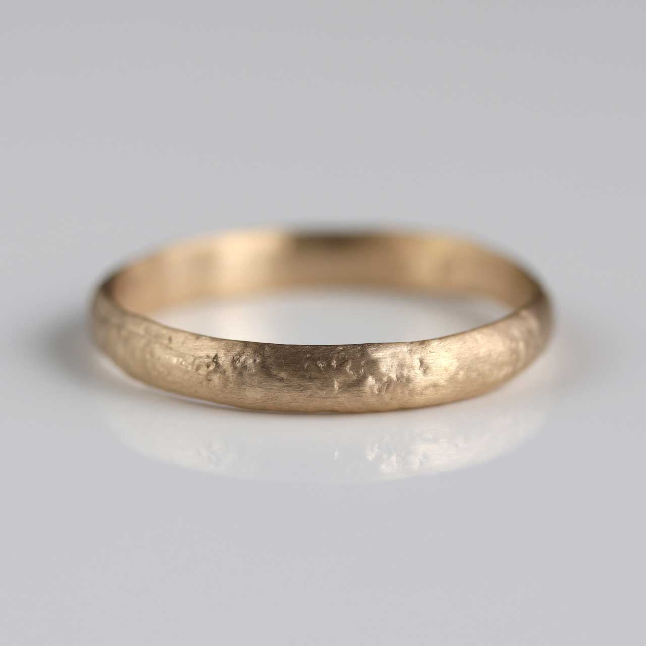 This distinctive band has an uneven, rugged texture that gives it the look of a timeworn, ancient ring. The organic, nonuniform edges gently rise up and down, mimicking life's ever-changing journey. In contrast to our 3mm Ancient Band, this ring has a more rounded profile, with a deeper texture.