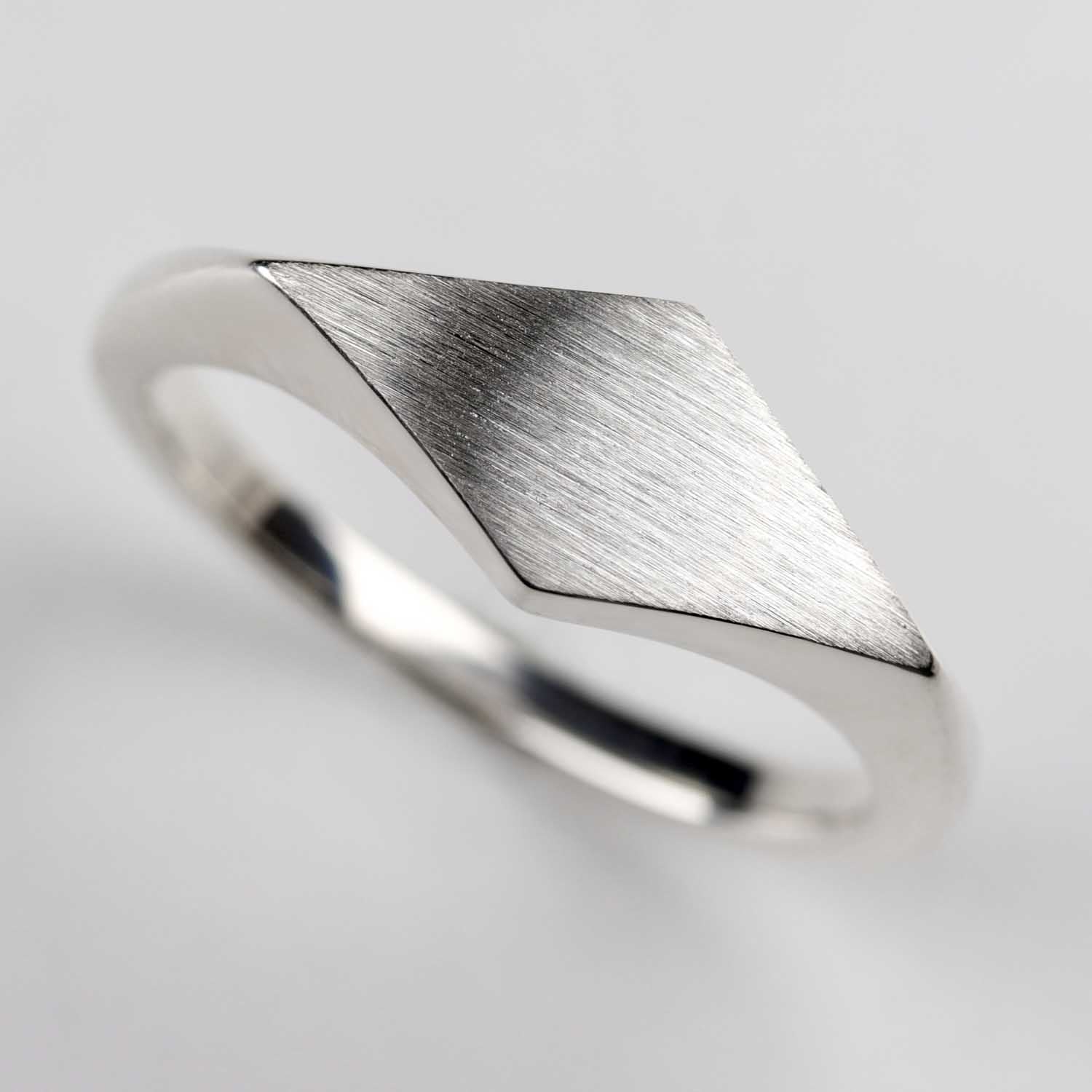 This unique signet ring features a diamond-shaped geometric face. Add a personal touch with a hand-engraving to make it uniquely yours.