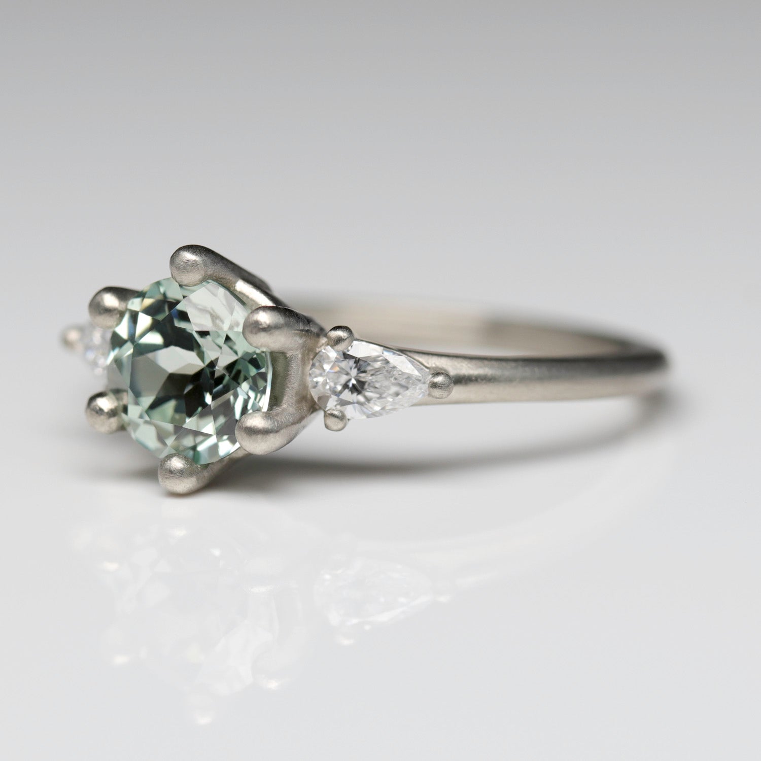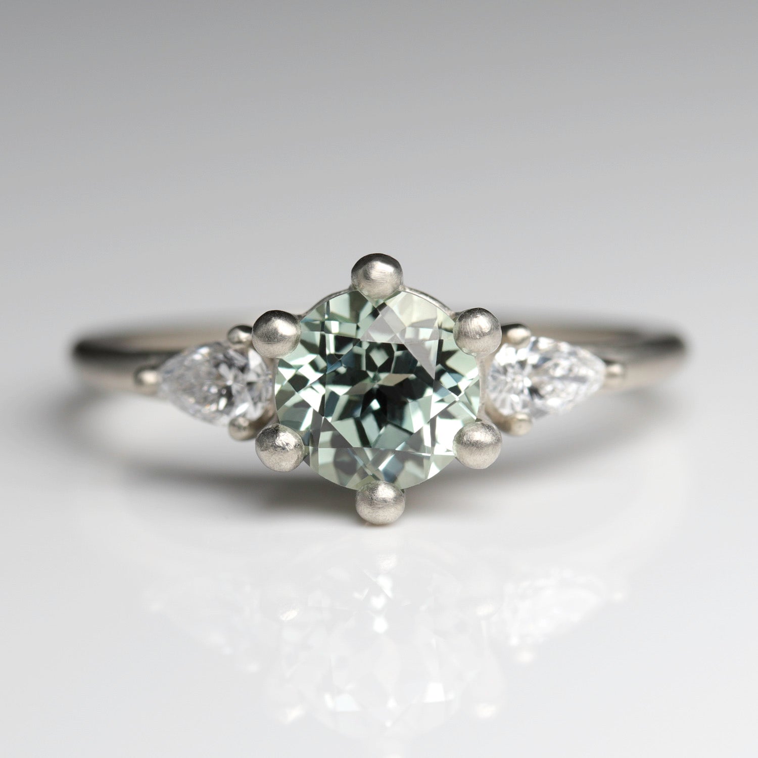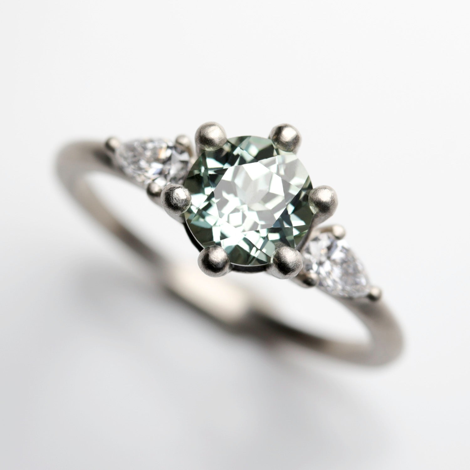 6mm Prong-set Three Stone Ring with Pear-Shaped Side Stones •