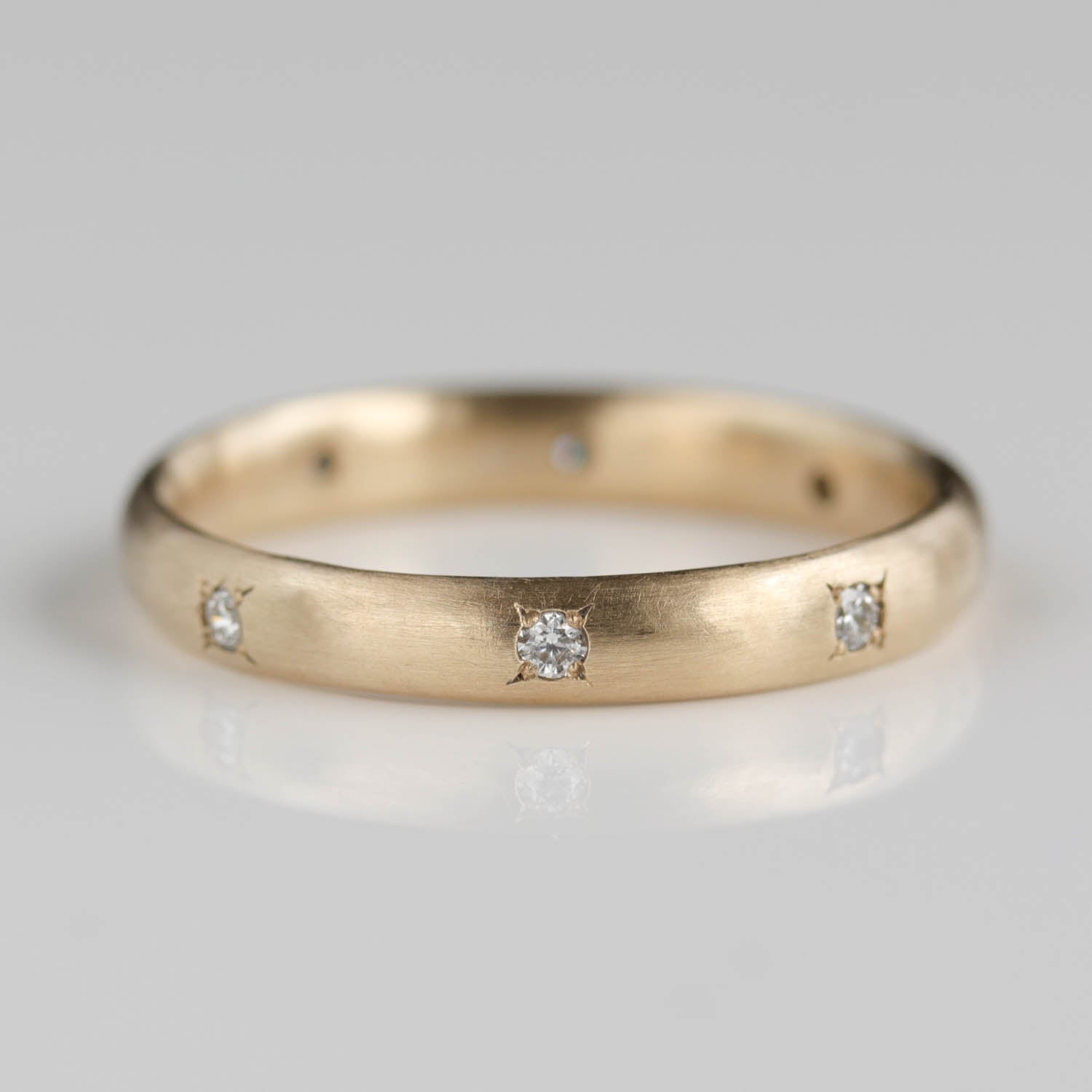 This comfort-fit classic band has a slightly rounded exterior and comfort fit interior, with eight stones bead-set around the exterior of the band. Available in a 2mm or 3mm width and approximately 1.6mm thick.