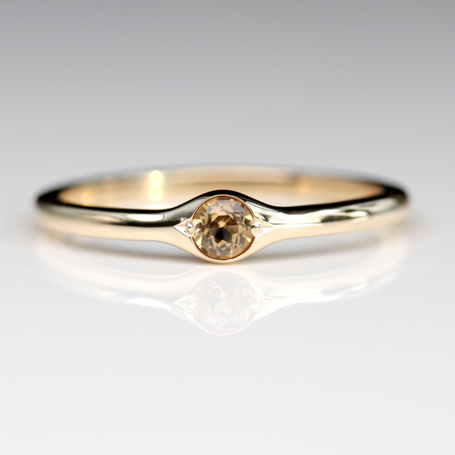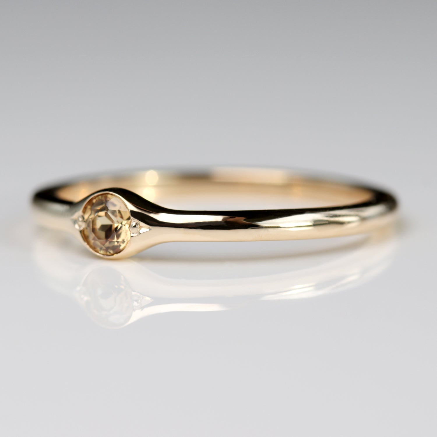 Our 3mm Bump Ring with a Lab-grown Orange Sapphire center stone in 14k yellow gold.