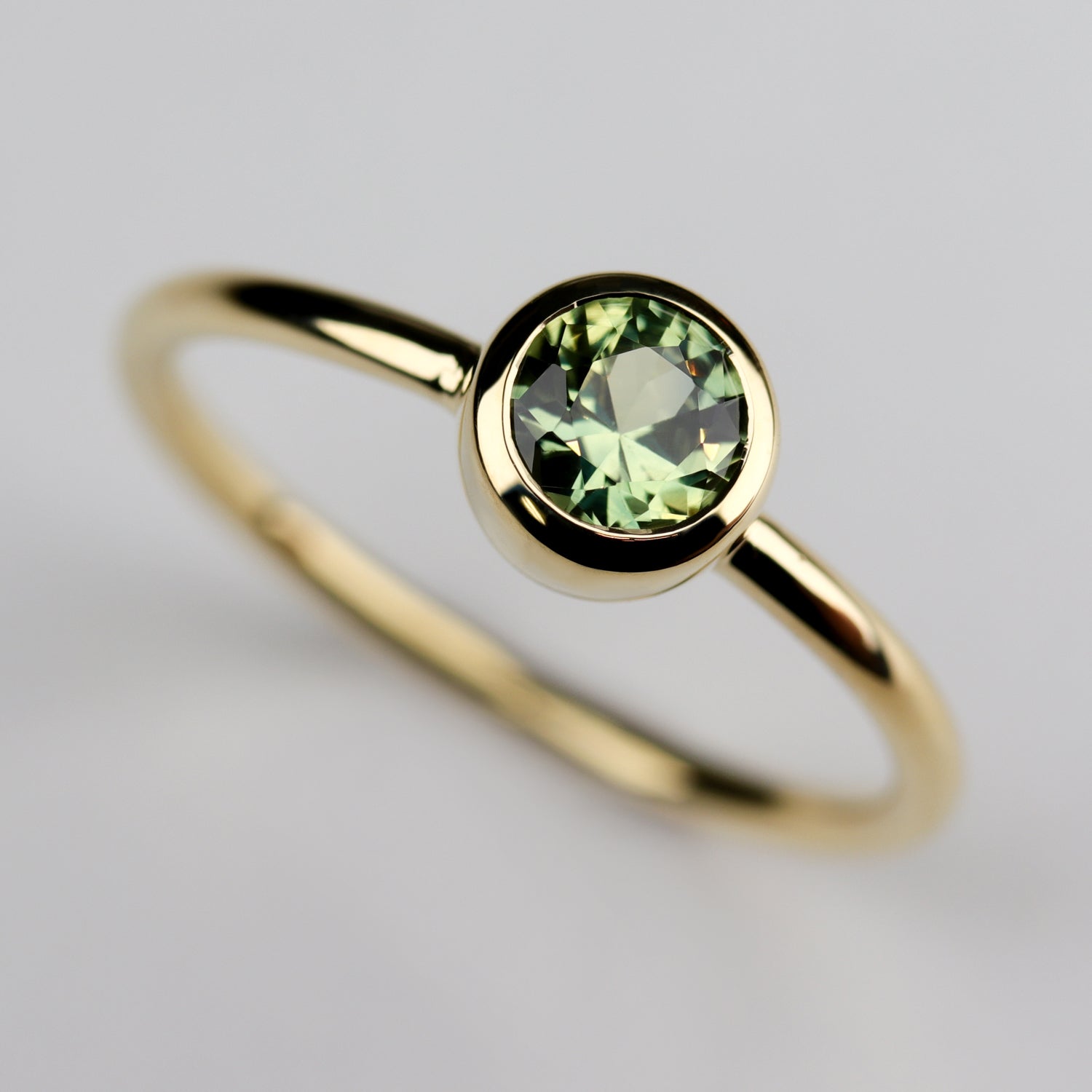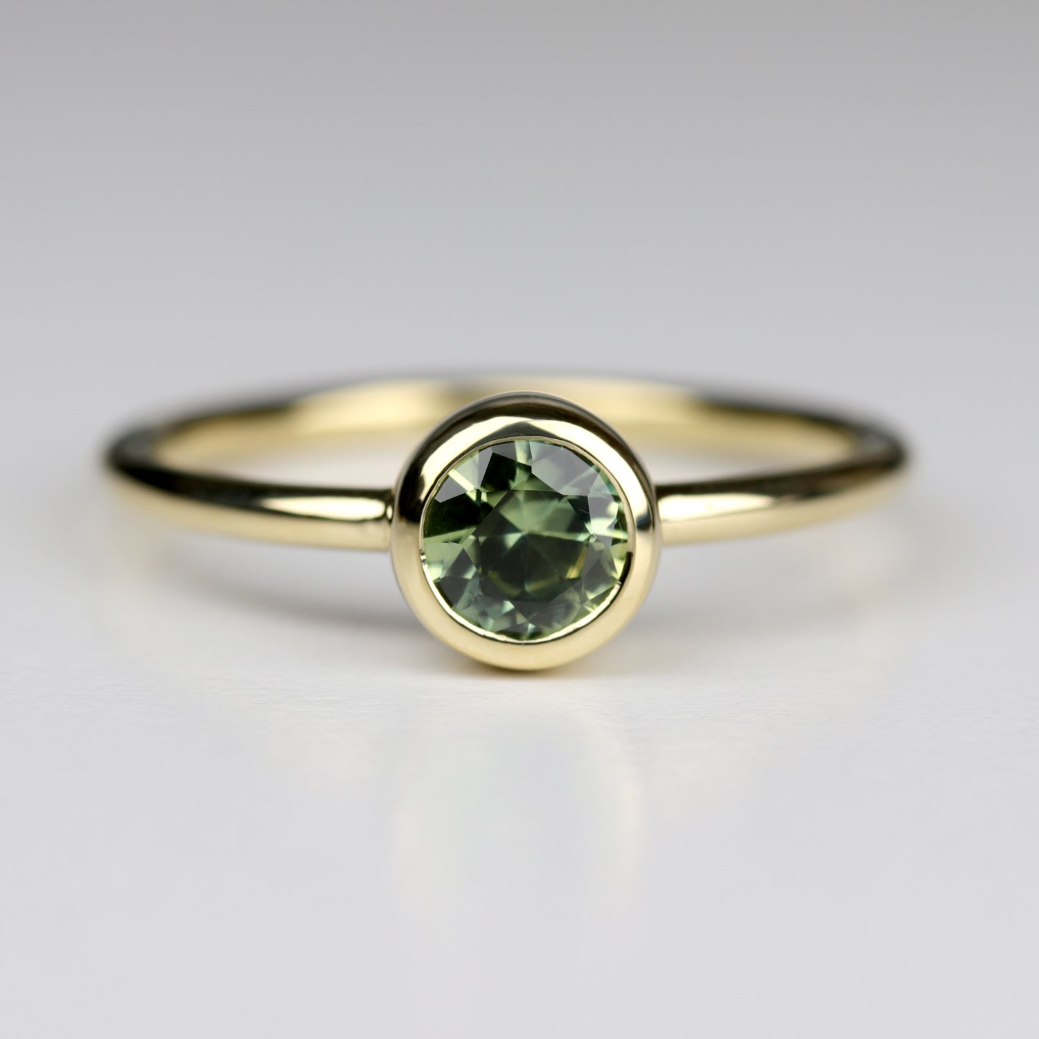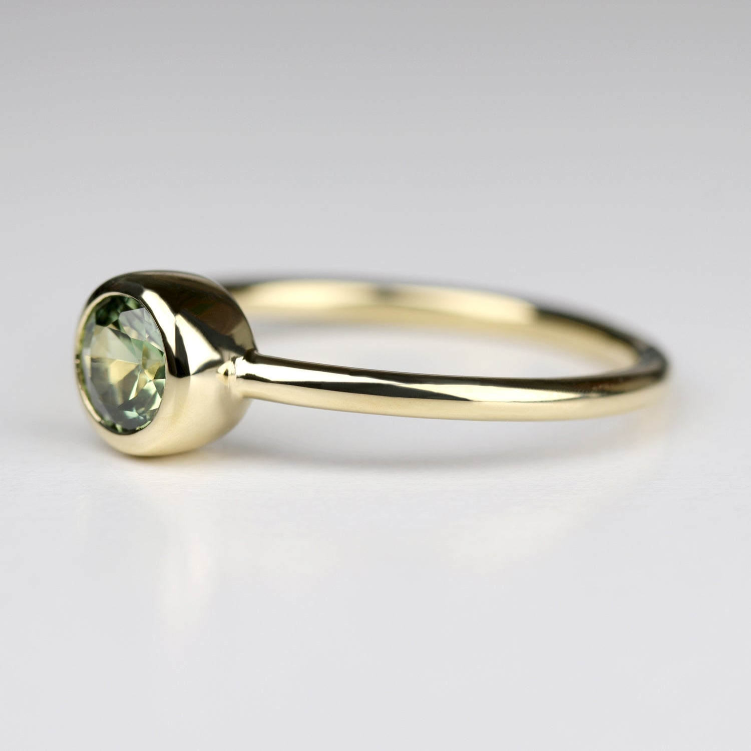 Our 5mm Rustic Bezel-set Solitaire with an Australian Sapphire center stone. Made in 18k yellow gold.
