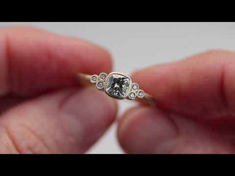 - Center stone is cushion cut 5x5mm or 6x6mm