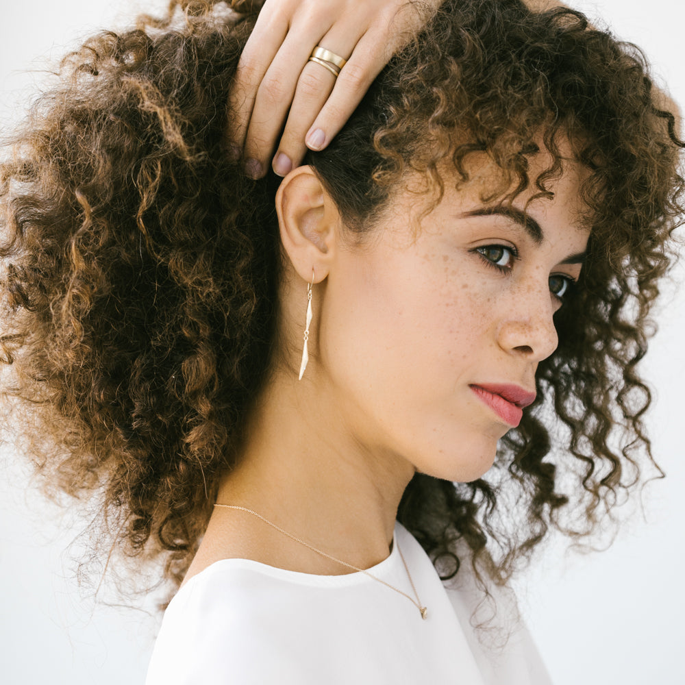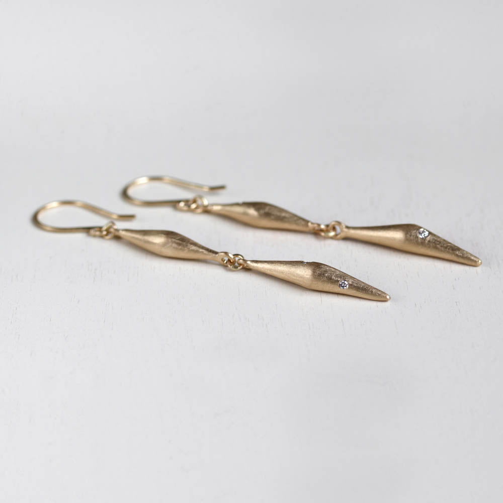 Clean, linear, and organic, our Double Pod Dangle Earrings are quietly elegant and versatile, the perfect piece for both everyday and special occasions. Flush set diamonds catch the light as these sculpted earrings move.