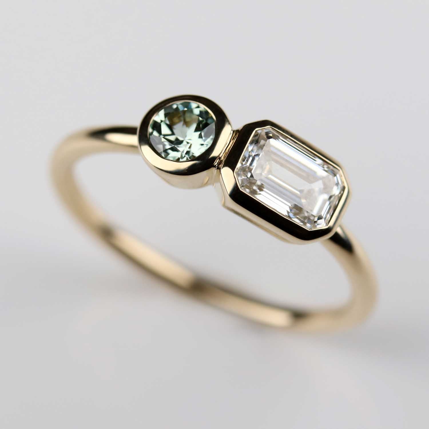 Traditional Toi et Moi rings display two different gemstones, cut and sized identically and affectionately set side-by-side. Contemporary ones, like ours, capture all the romance more playfully - varying in size, shape, and color.