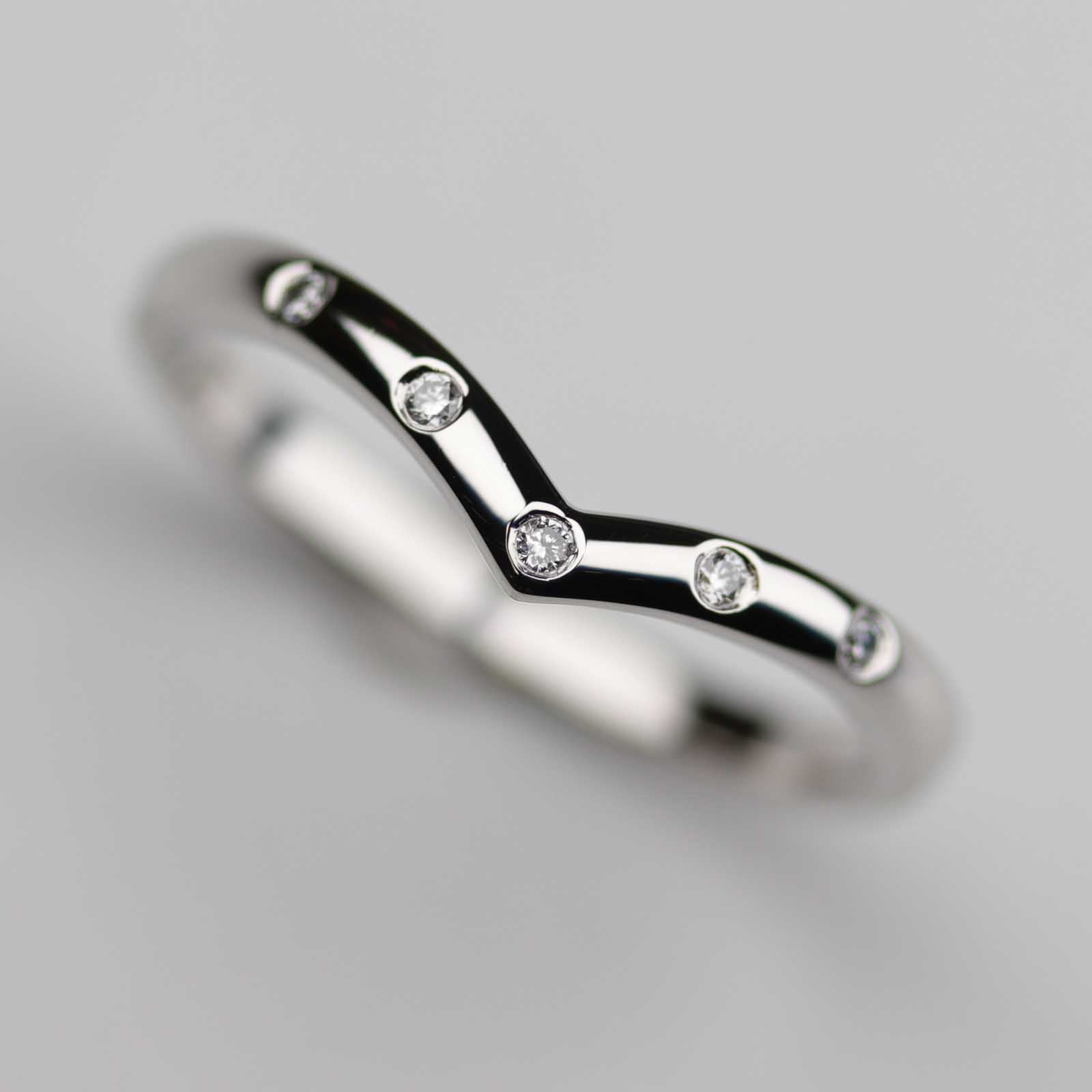The Three Stone Low Dome V Contour Band customized with additional flush sets.