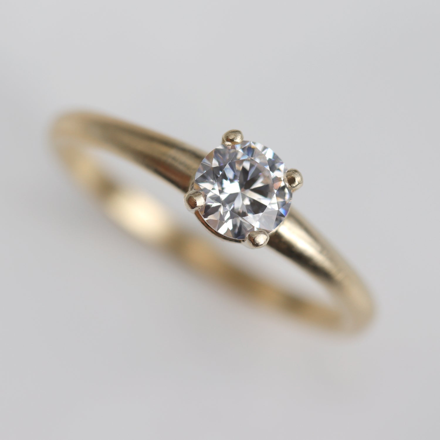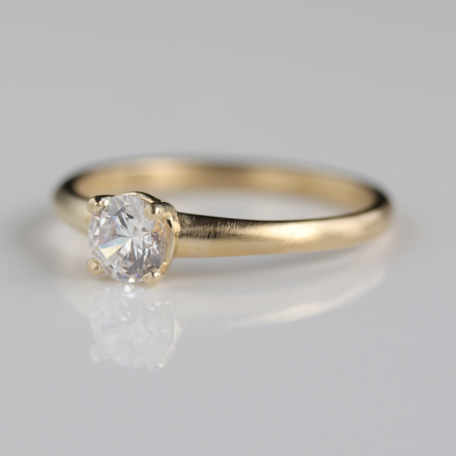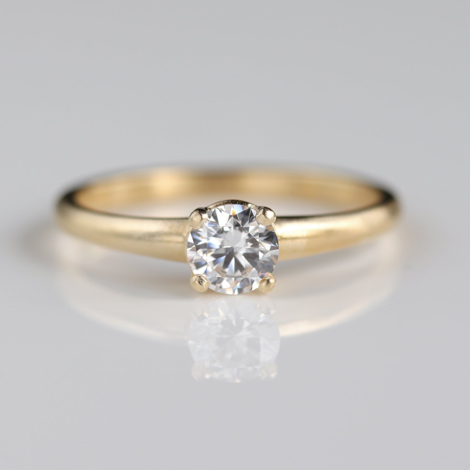 - 5mm (~0.50ct) or 6mm (~0.80ct) round brilliant-cut stone