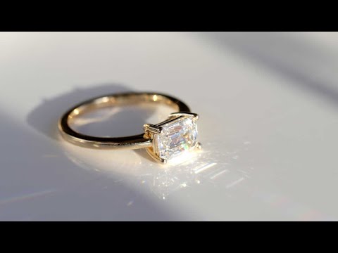An oval cut center stone set East-West lends a chic, timeless look to this minimal basket setting.