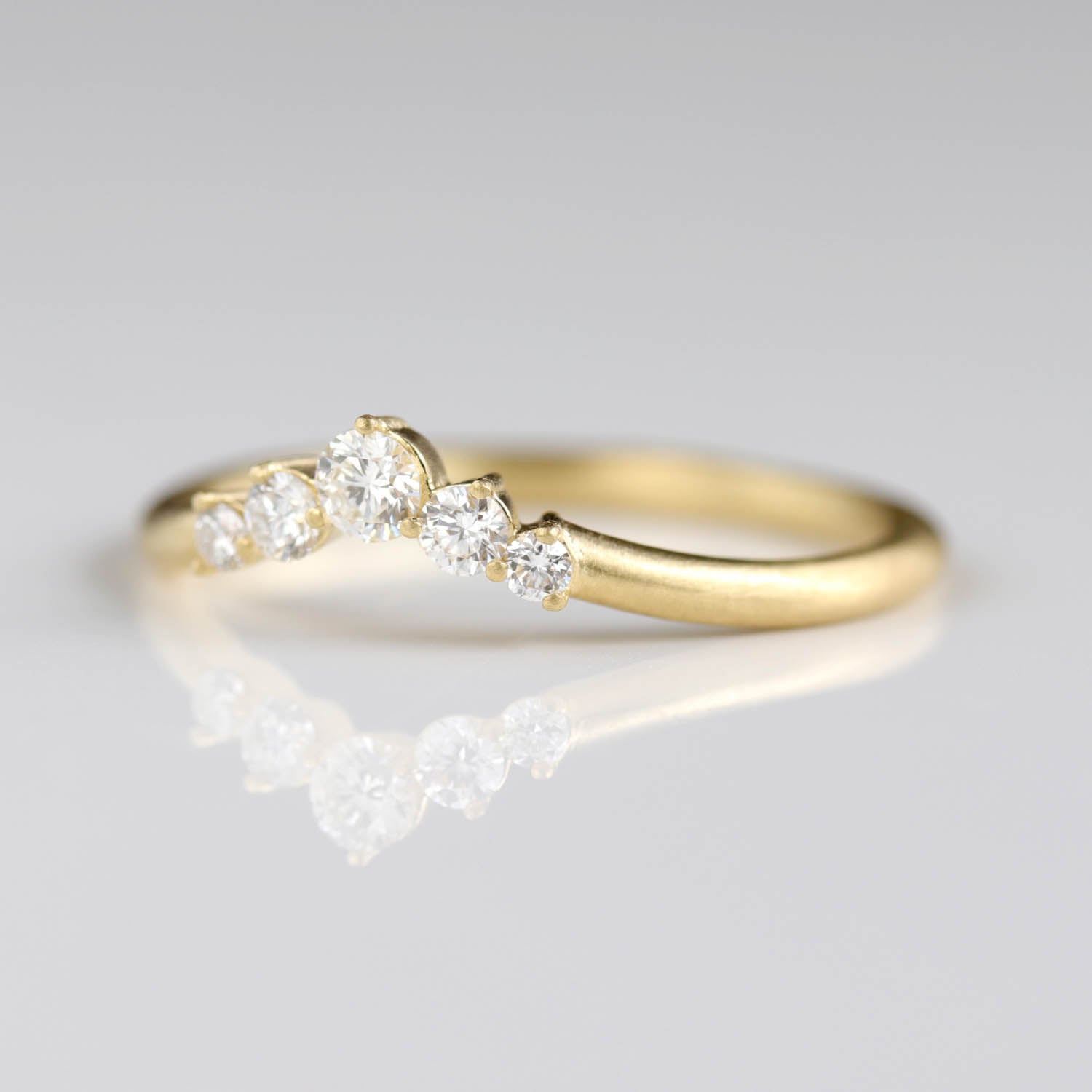 This delicate multi-stone contour band is the perfect mix of modern, minimal, and feminine. As versatile as it is sparkly, we like this one as an ultra-minimal engagement ring, tiny wedding band, or a dainty stacking ring.