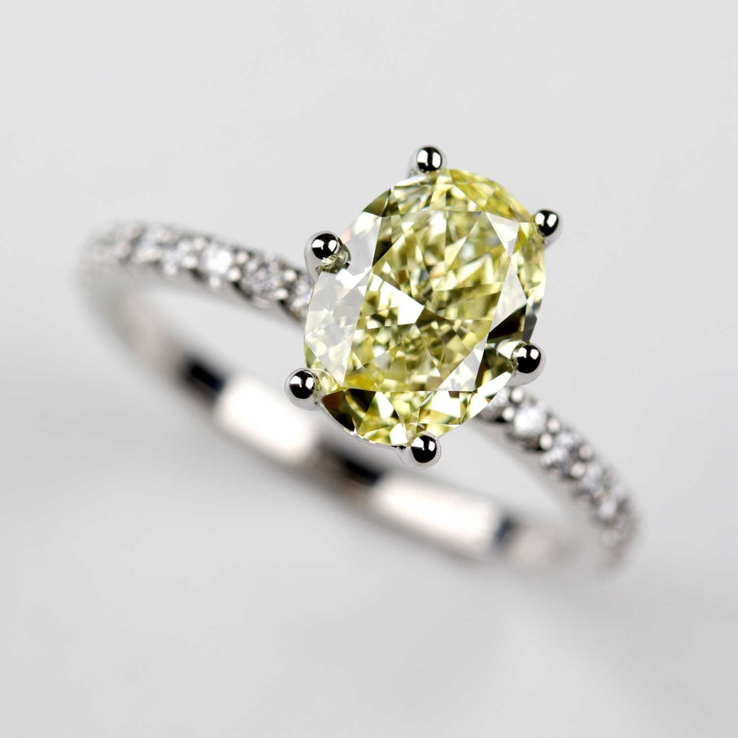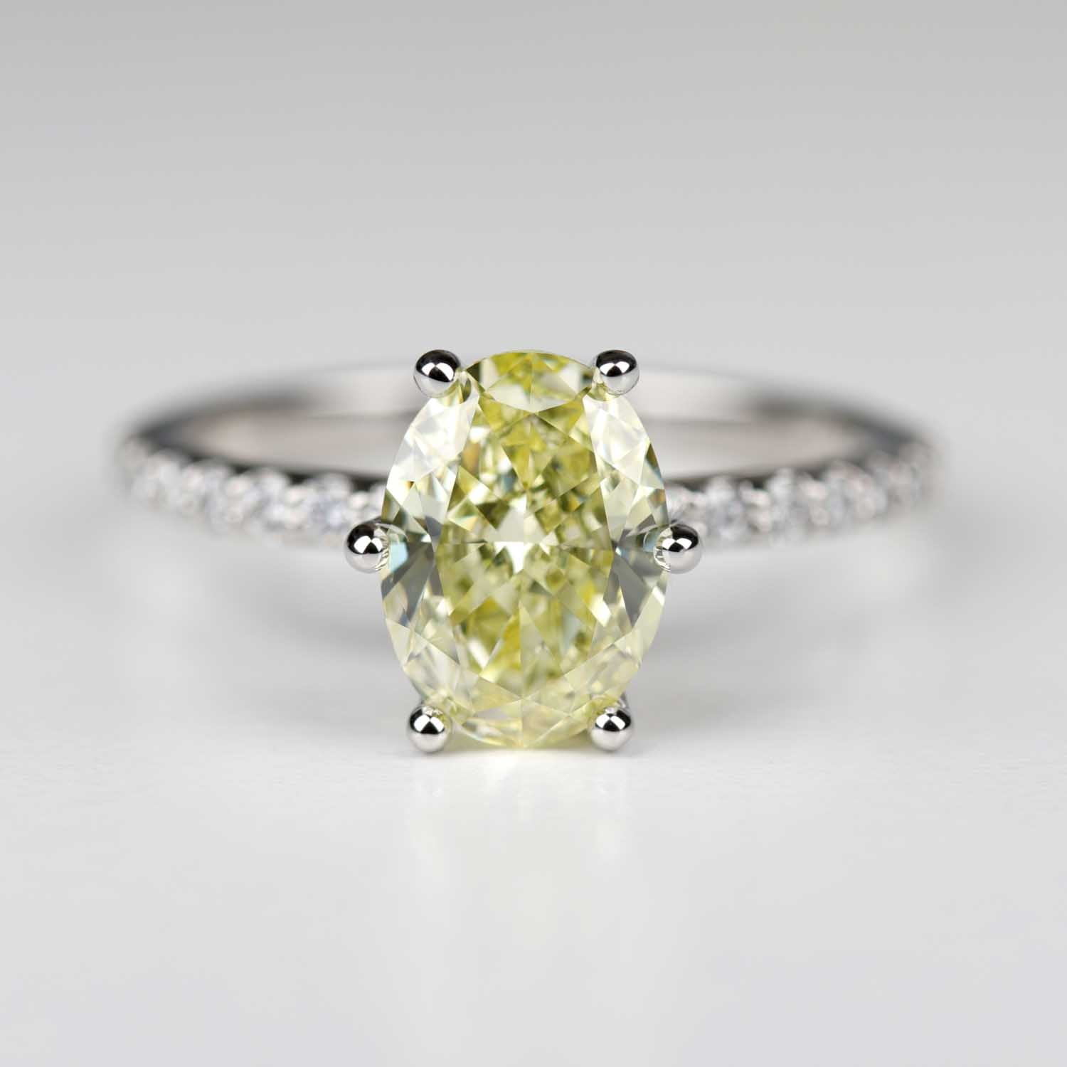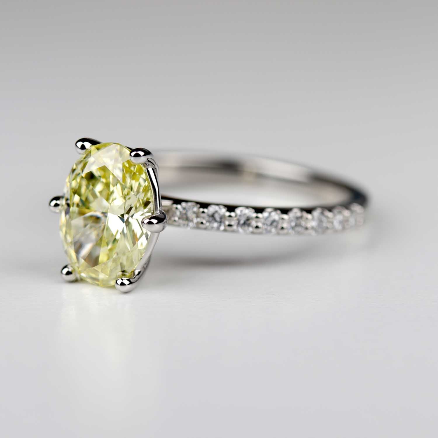 Our Pave Basket Solitaire modified with six prongs and a yellow 1.37ct oval lab-grown diamond.